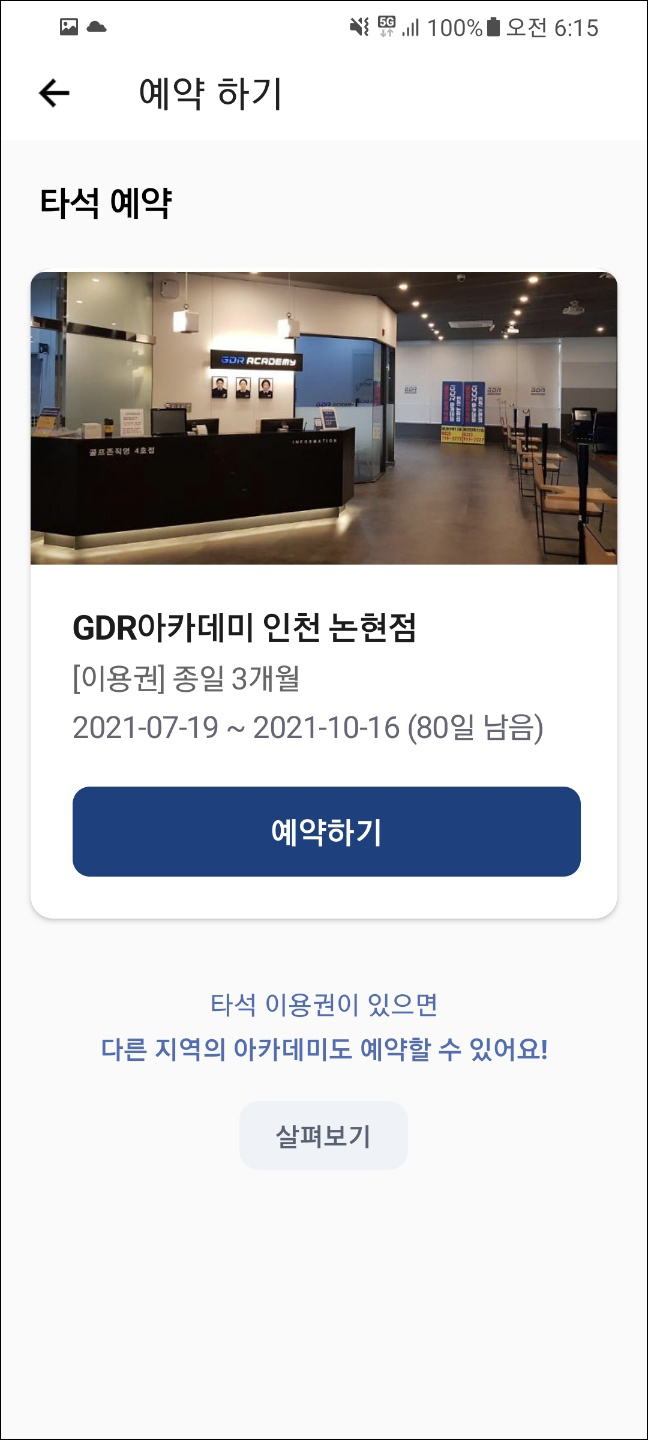 오늘은 아침 일찍 타석예약을 하게 되었다.이른 아침에 연습을 하고 나면, 하루가 웬지 여유로운 느낌으로 가벼운 마음이다.6시에 일어나서 GDR어플을 보니 6시 15분부터 예약이 가능했다.주저하지 않고 6시15분을 예약했다.가볍게 씻고서 모자를 눌러 쓰고 GDR아카데미 연습장을 방문했다.이른 아침 시간에는 2, 3명 정도 계시고, 시간이 조금 더 지나면 1, 2명 정도가 더 나오신다.나는 이상하게 8번 타석에서 연습을 자주 하게 되는 것 같다.